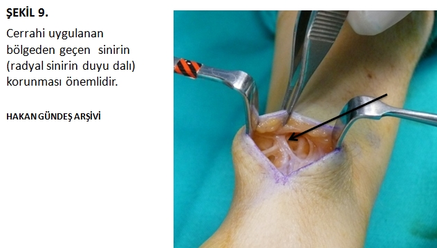 En önemli terslik cerrahi uygulanan bölgeden geçen bir sinirin (radyal sinirin duyu dalı) yaralanması veya kesilmesi durumudur (şekil 9). Ameliyatın büyütme (özel gözlük)altında yapılması önemlidir. Sinirin yaralanması durumunda oldukça uzun ve sıkıntılı bir süreç başlar.