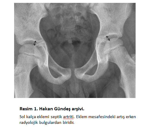 Hematojen septik artrit çoğunlukla çocukluk çağında gözlenir (resim 1). Direkt inokülasyon(tıbbi girişim sonrası) yolu ile oluşan septik artrit doğası gereği erişkinlerde gözlenmektedir.